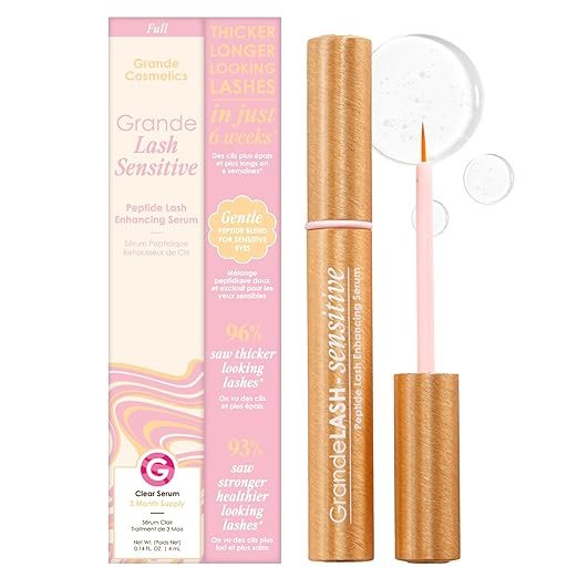 Experience visibly longer, thicker, and healthier lashes with Grande Cosmetics GrandeLASH-Sensitive Peptide Infused Lash Serum. Crafted for those with sensitive eyes, this lash-enhancing serum delivers real results without irritation. Its powerful blend of peptides, amino acids, and botanical extracts nourishes and strengthens each lash from root to tip.
